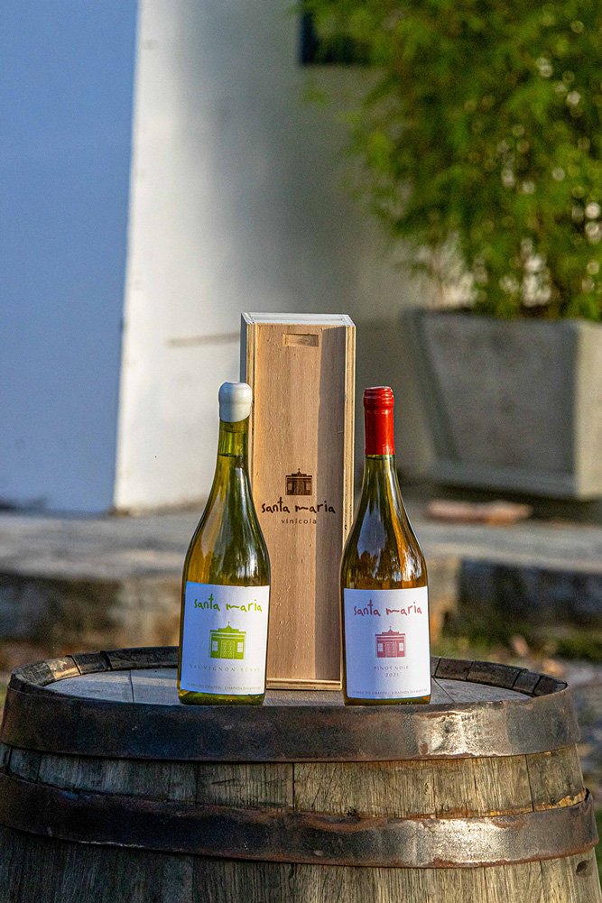 Durante a visita, você será guiado por membros da nossa equipe ou da família fundadora, que compartilharão curiosidades sobre o terroir, os processos de vinificação e a história da Santa Maria. A experiência é finalizada com uma degustação especial de dois vinhos escolhidos por nós, que expressam a identidade e o cuidado presente em cada garrafa.